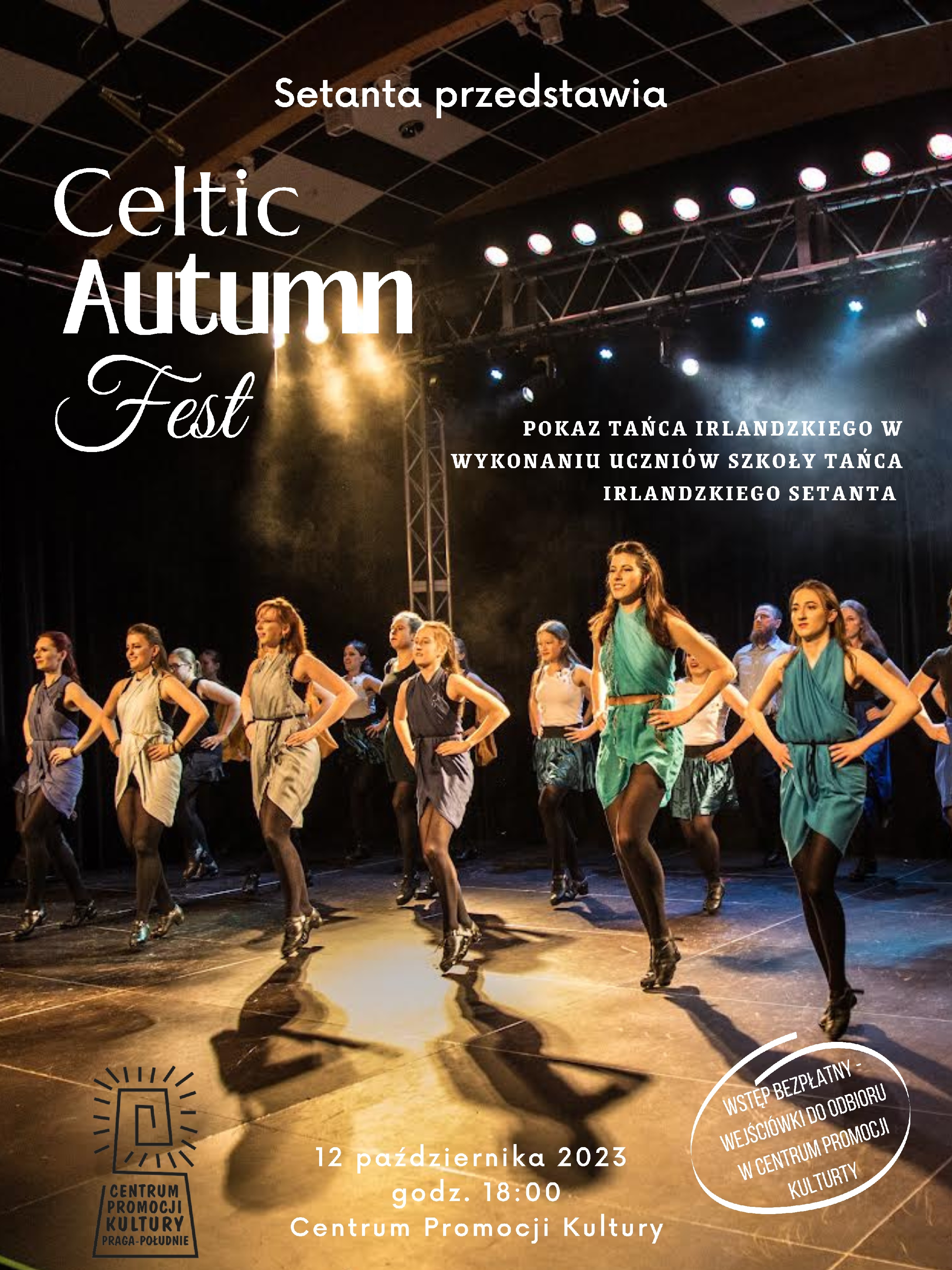 „Celtic Autumn Fest”. Taniec, muzyka, wspólna zabawa - jak lepiej można przywitać jesień? Czyżby pokaz szkoły tańca irlandzkiego Setanta na radosne rozpoczęcie sezonu? TAK! Muzyka irlandzka, widowiskowy irlandzki step i choreografie grupowe zagoszczą tym razem w CePeKa. Zapraszamy na pokaz tańca irlandzkiego w wykonaniu naszych uczniów.