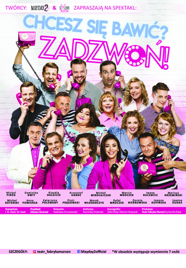 Twórcy spektaklu "Mayday 2" & "Szalone Nożyczki" zapraszają na kolejny światowy hit pt.: "Chcesz się bawić? Zadzwoń!" To prawdziwa komediowa uczta pełna zwrotów akcji, barwnych postaci i świetnego humoru spędzonego w towarzystwie gwiazd!