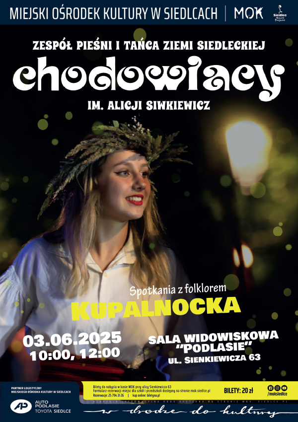 „Kupalnocka” to nowość wśród proponowanych przez Zespół Pieśni i Tańca Ziemi Siedleckiej „Chodowiacy” im. Alicji Siwkiewicz programów tematycznych, związanych z tradycjami ludowymi, a przeznaczonych dla młodych widzów. Na scenie przedstawiona zostanie inscenizacja obrzędów, odbywających się niegdyś w noc przesilenia letniego. Pokazane zostaną takie sytuacje jak zaklęcia, wróżby, śpiewy i tańce wokół ognia, tańce złych mocy, puszczenie wianków na wodę, wyławianie wianków i dobieranie się par, poszukiwanie kwiatu paproci, taniec z kwiatem paproci. Całość oprawiona klimatyczną grą świateł i nocnych dźwięków. Znaczenie poszczególnych obrazów scenicznych wyjaśniał będzie narrator.