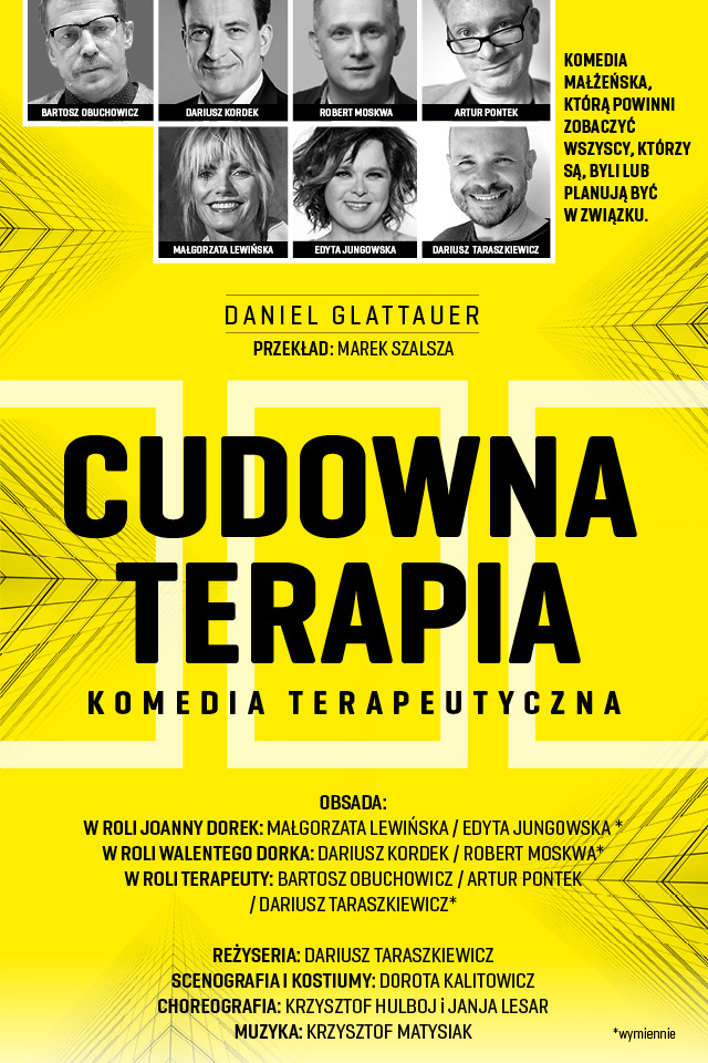 Małżeński kryzys? Mamy na to Cudowną terapię!😍 Leczą śmiechem, analizują kryzysy małżeńskie i mają najlepszego terapeutę na świecie🌍 Zapraszamy na przewrotną komedię terapeutyczną w gwiazdorskiej obsadzie⭐Czekają Was błyskotliwe dialogi, zabawne życiowe sytuacje, a może i happy end?👉🏻🎫