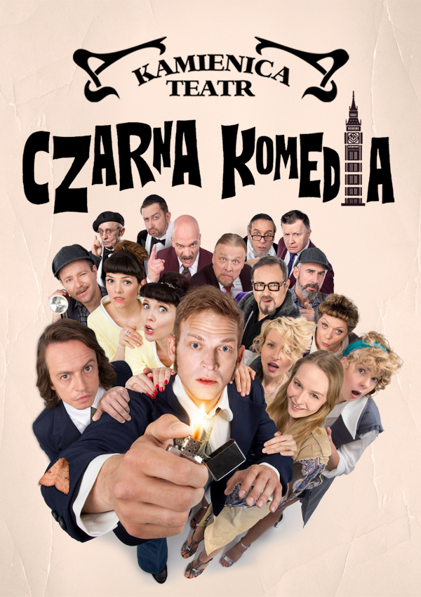 “Czarna komedia” autorstwa Petera Shaffera to jedna z najczęściej grywanych komedii na świecie. Fenomen tego przedstawienia polega m.in. na odwróconej logice: kiedy na scenie gaśnie światło, aktorzy poruszają się swobodnie jakby w ich świecie panowała jasność, kiedy jednak na scenie zapalają się reflektory, wszyscy bohaterowie „wpadają w ciemność” i poruszają się po omacku, stąd komiczność sytuacji i całe serie pomyłek.