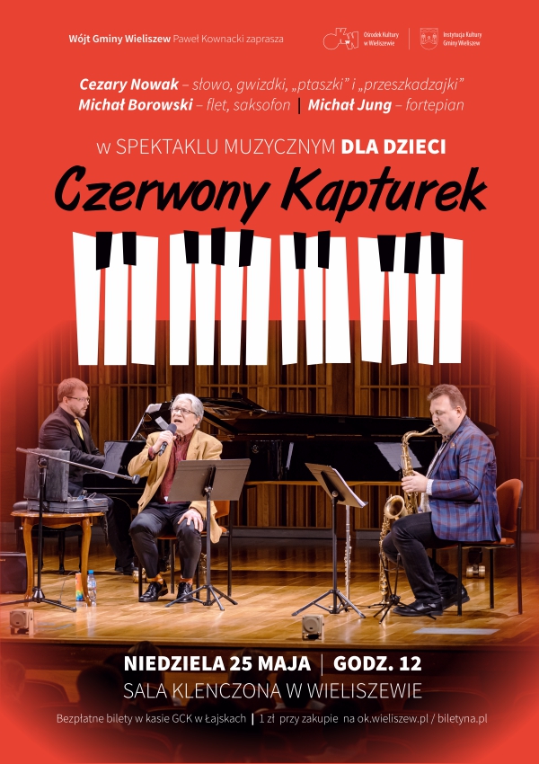 Zapraszamy na kulturalny Dzień Dziecka w Sali Klenczona, podczas którego dzieci obcować będą z muzyką klasyczną podaną w przystępnej i arcyciekawej formie! Na podstawie słynnej bajki Jana Brzechwy artyści Filharmonii Narodowej przedstawią spektakl muzyczny o przygodach uroczej dziewczynki w czerwonej pelerynce, niosącej lekarstwa ukochanej babci.
