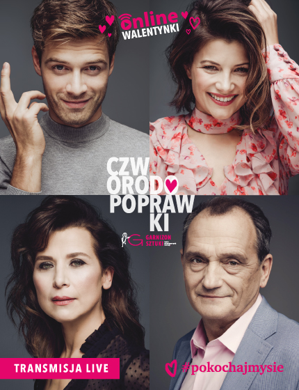 CZWORO DO POPRAWKI to komediodramat o tym, że zawsze jest szansa, by na nowo zakochać się we własnej żonie albo we własnym mężu. W spektaklu występuje plejada znakomitych aktorów: Katarzyna Herman, Piotr Machalica, Agnieszka Sienkiewicz/Joanna Osyda i Marcin Korcz.