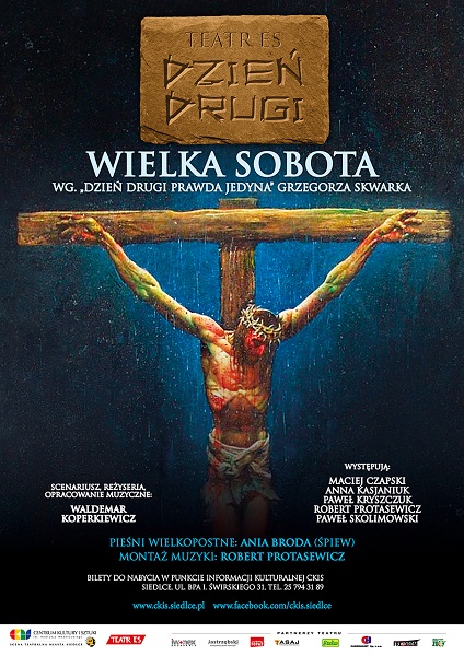 W spektaklu udział biorą: Ania Broda - śpiew, Jacek Mielcarek -- duduk, którzy wykonają pieśni wielkopostne z XVI i XVII wieku oraz aktorzy Teatru Es - Anna Kasjaniuk, Paweł Skolimowski, Robert Protasewicz, Maciej Czapski, Paweł Kryszczuk. "Dzień Drugi" to spektakl pasyjny ukazujący refleksje, przemyślenia współczesnego człowieka na temat wiary, zwątpienia, miejsca Jezusa w naszym codziennym życiu. Całość widowiska świetnie dopełniają projekcje materiałów multimedialnych oraz klimatyczna muzyka.