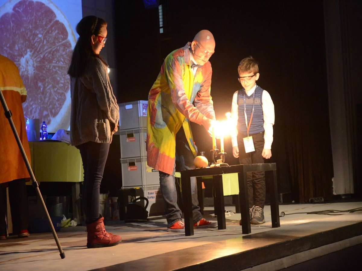 Pokaz interaktywny pt. „Apetyczny Układ Heliocentryczny” Ekipy Pana Korka — to fascynująca podróż przez Układ Słoneczny z wykorzystaniem interaktywnego planetarium oraz… warzyw i owoców! Planetarium łączy grafikę trójwymiarową z danymi astronomicznymi dotyczącymi położenia, wielkości i wyglądu planet, planet karłowatych, księżyców oraz planetoid. Natomiast ziemskie owoce, warzywa i przyprawy posłużą do budowy modelu Układu Słonecznego. Na pokazie nie zabraknie oczywiście eksperymentów. Naukowcy z Laboratorium Pana Korka przygotowali ciekawe doświadczenia dotyczące każdej z planet krążących, zgodnie z teorią Mikołaja Kopernika, wokół Słońca. Każdy uczestnik otrzyma dodatkowo okulary 3D, które będzie mógł zabrać ze sobą do domu.