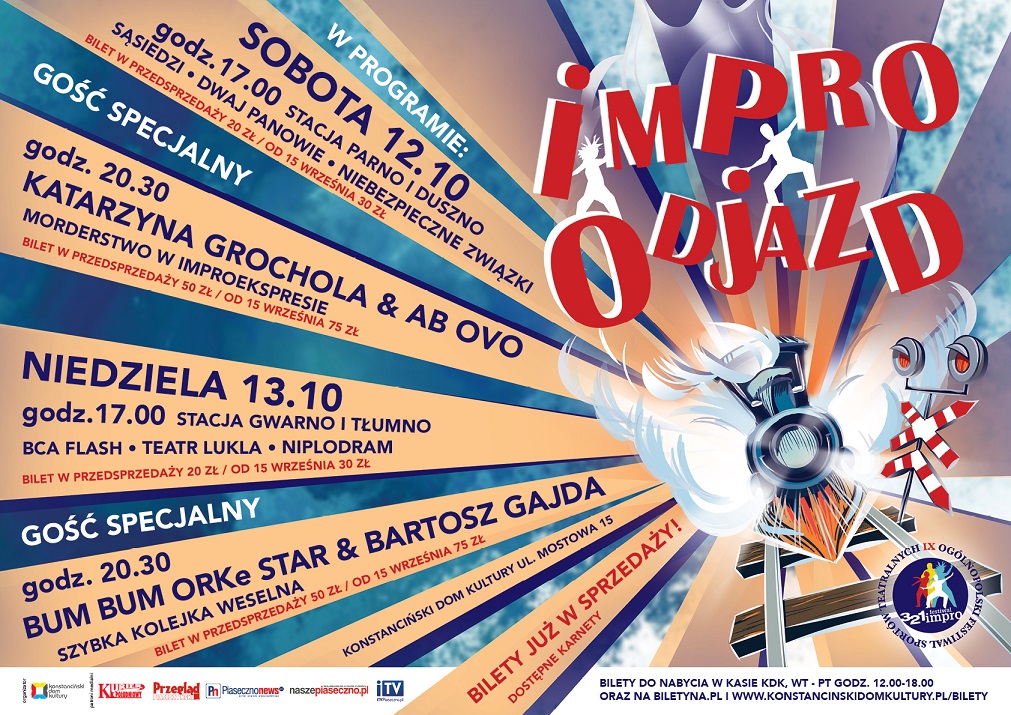 Wieczorem „Improekspres” zabierze nas w świat improwizowanego kryminału, w którym głównym kierownikiem będzie gość specjalny, znakomita pisarka KATARZYNA GROCHOLA, a podróżnymi AB OVO Teatr Improv.