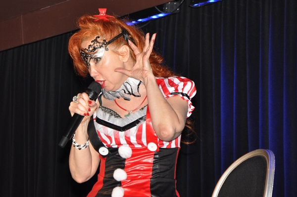 Dzięki specyficznej, interaktywnej konstrukcji programu, angażujemy publiczność do wspólnego śpiewania rytmicznych i niezwykle zabawnych refrenów piosenek. Postaci takie jak Kobieta Syrena, Wróżka Iza, Koza – Celebrytka, Prezenterka TV – Pani Hania to tylko niektóre z całej plejady dam wyłanianych z talii kart. Towarzyszący Pani Fraszce Joker reprezentuje cały męski ród – pod jego postacią kryje się zdrajca, kochanek, dobry mąż, artysta, polityk ect.