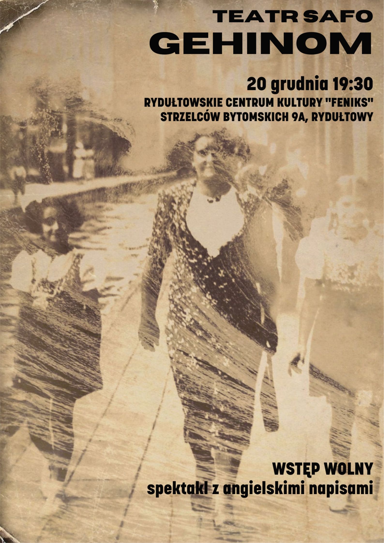 Spektakl „Gehinom” powstał na bazie szczątkowych informacji i kilku zdjęć, z których aktorzy Teatru SAFO plotą wzruszająca historie o żydowskiej rodzinie Ryba, która przed II Wojną Światową mieszkała w Rybniku.