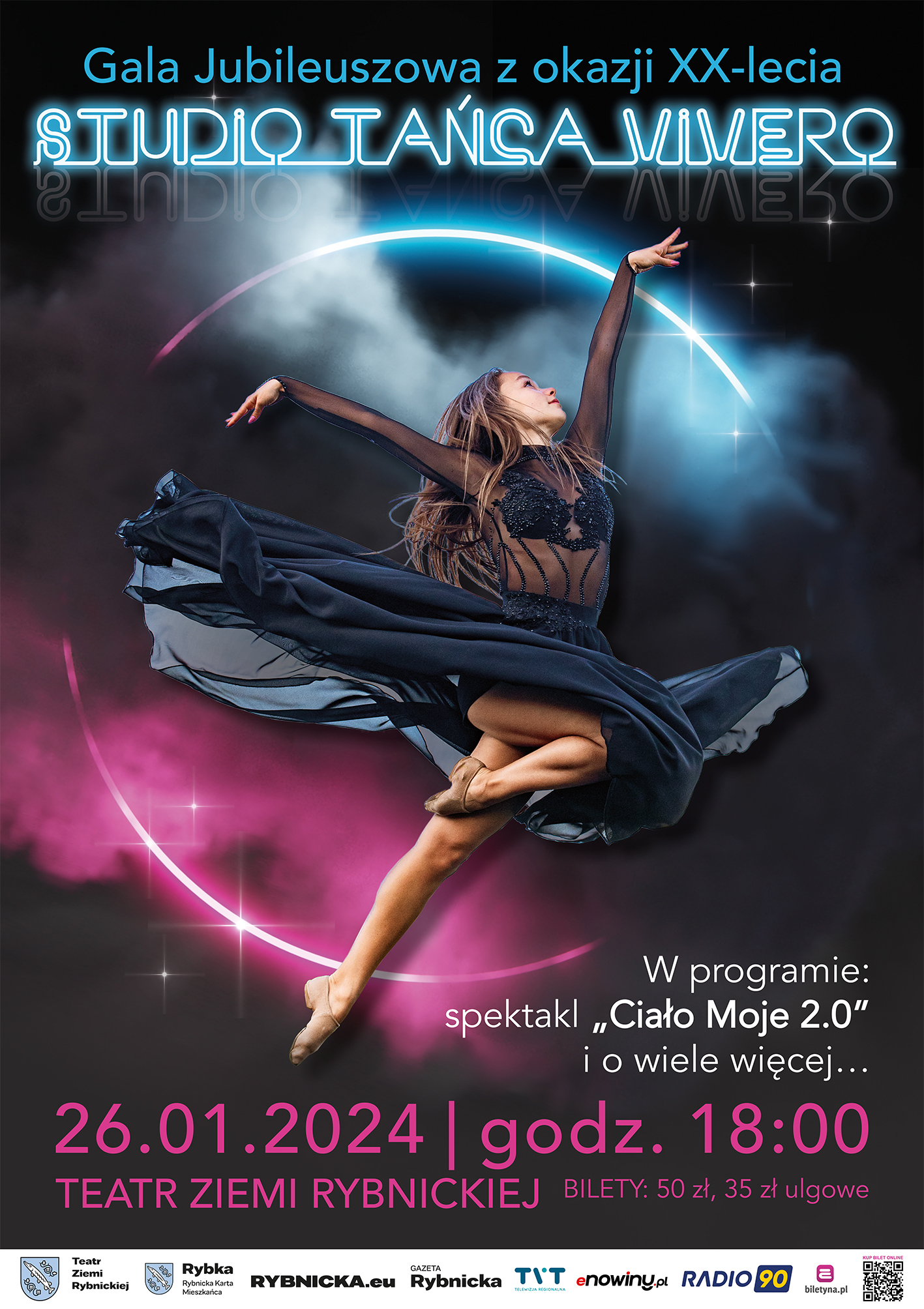 Zapraszamy na niezwykły jubileusz dwudziestolecia istnienia studia tańca przy Teatrze Ziemi Rybnickiej. Osią wieczoru będzie Spektakl "Ciało Moje 2.0"- uaktualniona wersja najgłośniejszego spektaklu Vivero, jednak widzowie mogą liczyć na jeszcze kilka dodatkowych atrakcji, których z pewnością nikt by się nie spodziewał...