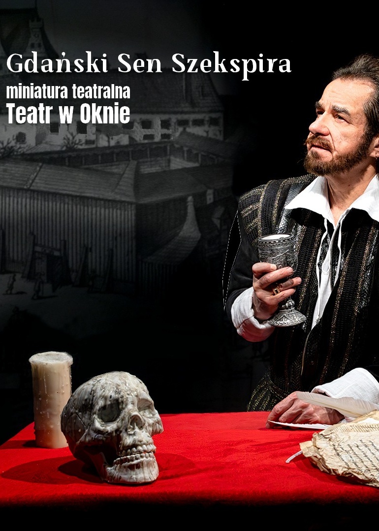 GDAŃSKI SEN SZEKSPIRA | spektakl, miniatura teatralna przedstawiająca postać Williama Szekspira jako aktora angielskiego odwiedzającego XVII-wieczny gdański teatr elżbietański - Szkołę Fechtunku. Okraszona dawką humoru oniryczna podróż dramatopisarza pomiędzy zatartym w historii snem a współczesną jawą.