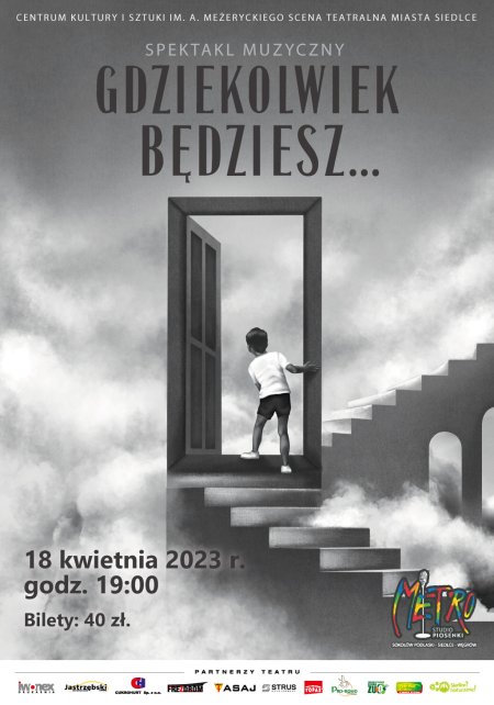 Studio Piosenki METRO działające na wschodnim Mazowszu pod auspicjami warszawskiego Teatru Studio Buffo Janusza Józefowicza i Janusza Stokłosy zaprasza na wyjątkowe autorskie przedsięwzięcie. Spektakl "Gdziekolwiek będziesz..." - pełen ludzi, takich jak Ty, którzy kochają, cierpią, tęsknią i marzą...