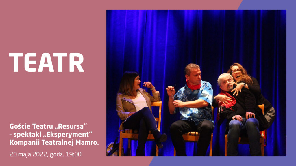 Przed nami drugie spotkanie z cyklu Goście Teatru „Resursa”, w ramach którego prezentujemy zespoły teatru amatorskiego z Polski. 20 maja o godz. 19.00 na naszej scenie wystąpi Kompania Teatralna Mamro ze spektaklem „Eksperyment”.