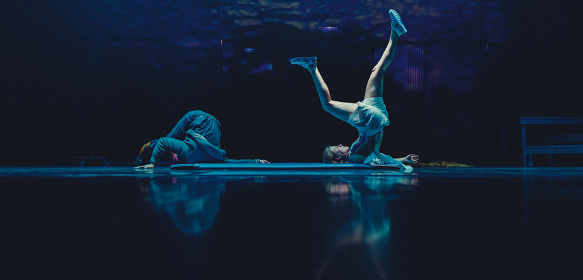 Maybe it’s worth go to the seaside? Maybe the sea can help you see the good side of life and soothe your anxiety? These are the questions that the creators of the Guppy 13 performance ask themselves. The show is a quasi-musical cobbled together somewhat awkwardly, inspired by the story and work of Bas Jan Ader, a Dutch artist seduced by the American Dream. Yvonne Rainer stressed that the mind is a muscle. The heart is one, too, the creators add. Guppy 13 is an attempt at exploring the athletics of the heart in the context of the element of water subjected to the process of domestication. A voyage of movement and music that the show’s characters set out on is an adventure of sailing between life and death, harbour and storm, earth and heaven. Adventure – as we all know – calls, so keep your ears open. Sail, little brother, sail, little sister. Ahoy!
