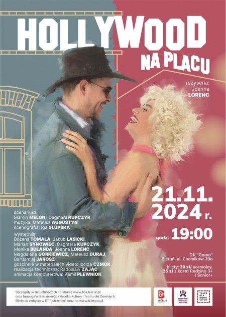 Najnowsza komedia Teatr dla Dorosłych w Bieruniu pt. „Hollywood na placu” zaprasza widzów na plac, na którym, jak już wiemy z innych spektakli bieruńskiej grupy, dzieją się rzeczy co najmniej niespodziewane.