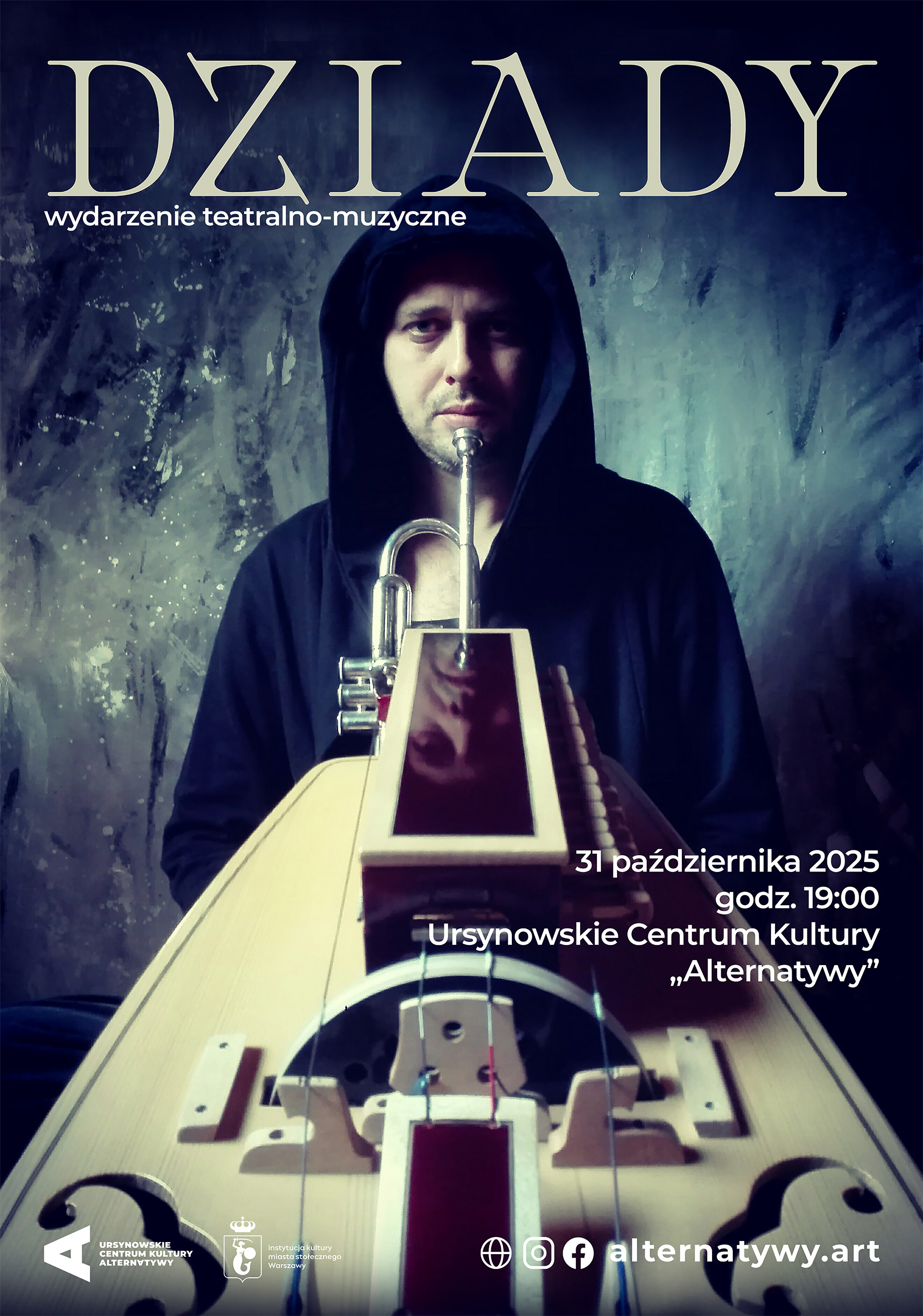 Wyjątkowe spotkanie teatru i muzyki, w którym II część „Dziadów” Adama Mickiewicza zyskuje nowy, niepowtarzalny wymiar. Spektakl przeplata się z koncertem, a muzyka staje się równorzędnym partnerem słowa, snując własną, sugestywną opowieść. Motyw winy i kary, zakorzeniony w rodzimej tradycji, wybrzmiewa tu poprzez niezwykłe dźwięki trąbki, liry korbowej i bębnów ramowych – instrumentów o niemal sakralnej sile. W etno-jazzowej oprawie całość przybiera formę rytuału, który głęboko porusza i na długo pozostaje w pamięci. To uczta zarówno dla ducha, jak i dla ucha.