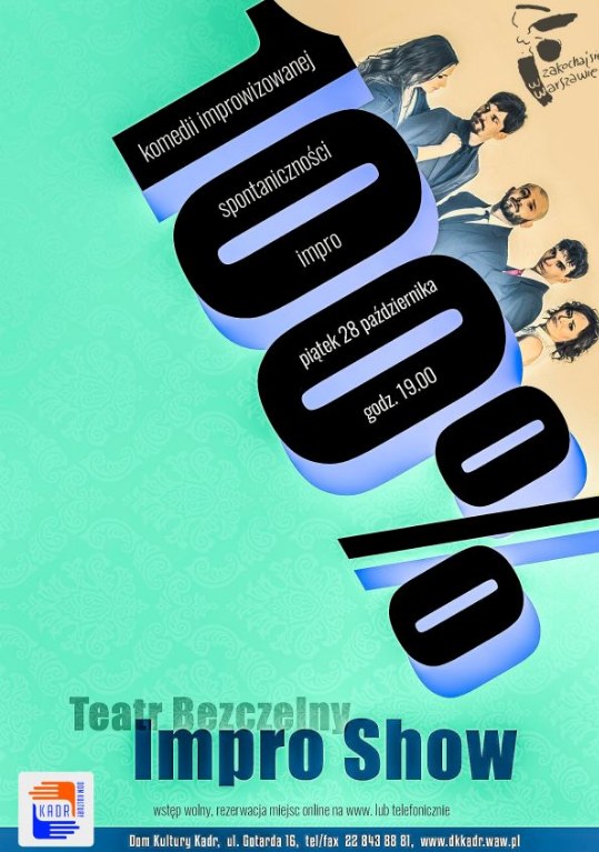 Komedia spontaniczności w 100% improwizowany spektakl, w którym na bazie jednego słowa, w wyobraźni widzów wykreuje się świat. Nieco abstrakcyjny, przyprawiony barwnymi postaciami oraz dużą dawką humoru. Impro (ang. improv) – teatr improwizowany to forma teatru, w której wszystko, co dzieje się na scenie jest tworzone na bieżąco. Powstały we wczesnych latach XX wieku, jako forma pracy z dziećmi, później było ćwiczeniami dla aktorów, a ostatecznie stał się odrębną dziedziną – sztuką wystawianą dla publiczności oraz techniką prowadzenia szkoleń i treningów. Dzisiaj na całym świecie poza sceną, techniki improv theatre używane są w telewizji, teatrze, biznesie, psychoterapii, szkolnictwie. Impro to wolność i spontaniczność. To tworzenie świata na podstawie jednego słowa. To działanie tu i teraz. To przełamywanie konwencji. Tu ważniejsze działanie niż myślenie, spontaniczność niż plan. Skupiając się na działaniu, przestajemy zastanawiać się, „co dalej” – po prostu reagujemy. Impro to technika, która pobudza kreatywność i spontaniczność, wzmacnia gotowość do zmian, kształtuje umiejętności komunikacyjne, pozwala uwolnić się od stresu. Ma swoje zasady i reguły, przydatne zarówno na scenie, jak i w codziennym życiu. Impro Teatr Bezczelny ¬ bez reżysera, bez scenariusza, bez dokładnie przygotowanych ról –bezczelnie! Teatr improwizowany w całej okazałości, oparty na maksymalnej interakcji z widzem, poważny zabawnie, zabawny na poważnie.