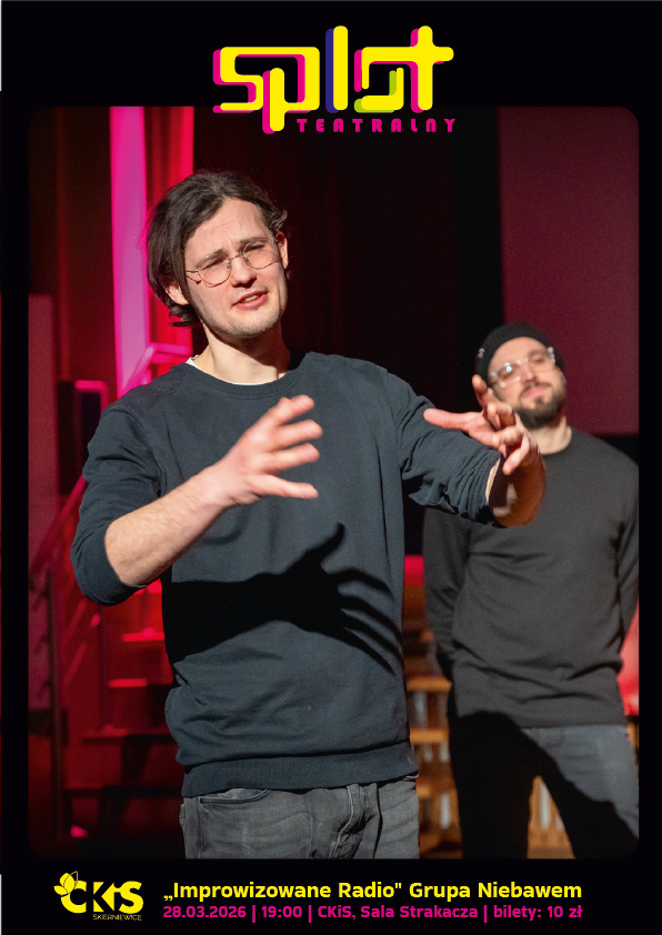W ramach organizowanego z okazji obchodów Międzynarodowego Dnia Teatru wydarzenia SPLOT teatralny. Teatr, który łączy zapraszamy na spektakl teatru improwizowanego „Improwizowane radio” w wykonaniu Grupy Niebawem.