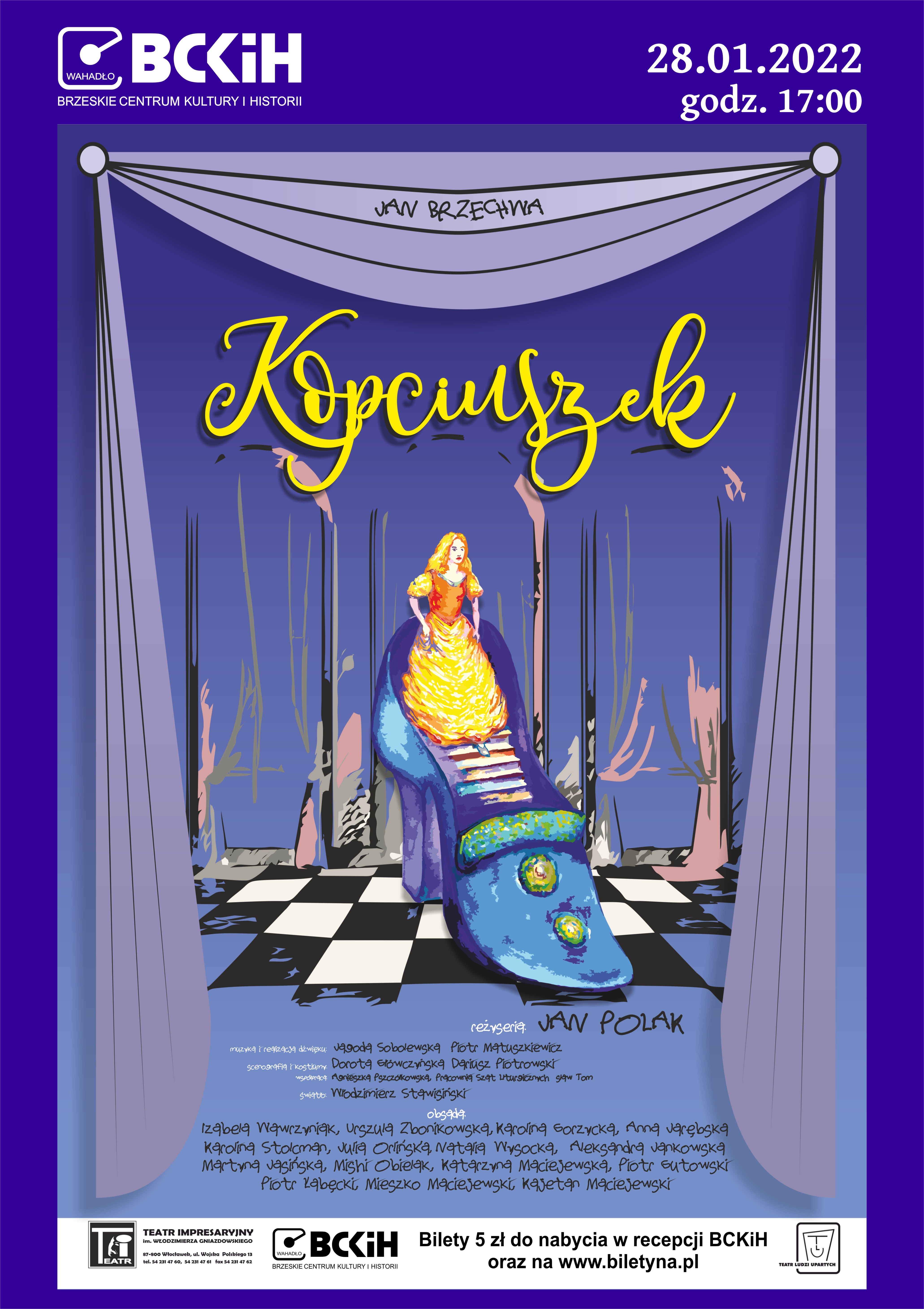 teatralnych i realizacji filmowych. Wszystko to sprawia, że Kopciuszek jest tytułem rozpoznawalnym przez wszystkie dzieci na całym świecie. Teatr Ludzi Upartych realizuje przede wszystkim spektakle dla młodzieży i dorosłych, ale ma w swoim repertuarze również przedstawienia dla dzieci, m.in. „Lokomotywę”, „Królewnę Śnieżkę”, „Krasnoludki są na świecie”, „Pchłę Szachrajkę” czy „Brzechwa dzieciom”… I właśnie Jan Brzechwa, wybitny poeta piszący również dla dzieci jest autorem tekstu, który posłużył Upartym do stworzenia ich najnowszego spektaklu. Mamy nadzieję, że najmłodsi Widzowie znajdą w nim wszystko, czego oczekują idąc do Teatru.