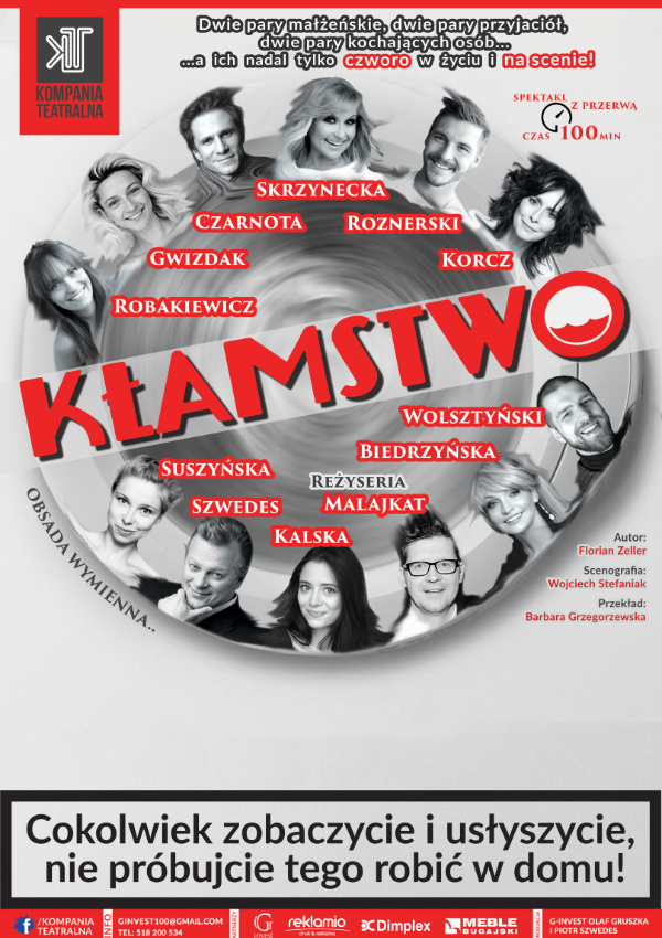 Dwie pary małżeńskie, dwie pary przyjaciół, dwie pary kochanków, a ich nadal tylko czworo, jak to jest możliwe? Wszystkiego dowiecie się Państwo podczas spektaklu „Kłamstwo”!