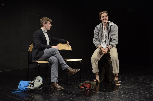 Do Jeroma, młodego mężczyzny wspinającego się po szczeblach korporacyjnej kariery, na dworcu przysiada się nieznajomy mężczyzna. Textor wygląda na bezdomnego, który zazwyczaj w takim miejscu prosi o parę groszy. Jednak nie o wsparcie mu chodzi. Spotkanie nie będzie zwyczajne. Czekając na spóźniony pociąg Jerome usłyszy kilka opowieści. Będzie też musiał... zaśpiewać piosenkę. Widz zaś będzie mógł podjąć próbę odpowiedzi na pytania o ciemne strony ludzkiej natury, zwłaszcza o to, co skłania go do najcięższych zbrodni. W tym minimalistycznym spektaklu rozpisanym na dwóch aktorów (i dwa krzesła) jego twórcy pragną dotrzeć do najmroczniejszych zakamarków ludzkiej duszy.