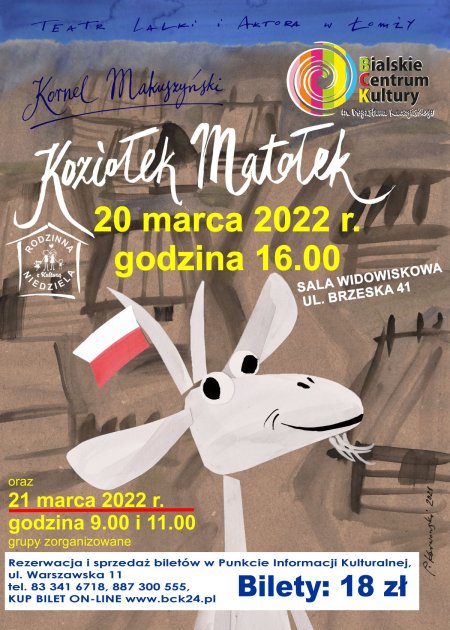 „Koziołek Matołek” jest adaptacją komiksu autorstwa Kornela Makuszyńskiego i Mariana Walentynowicza. Ten wierszowany spektakl w założeniu ma być doskonałą zabawą dla całej rodziny! Tytułowy Koziołek wyrusza w podróż w poszukiwaniu Pacanowa. Odwiedza różne miejsca, przeżywa niezwykłe oraz pouczające przygody. Po drodze poznaje ciekawe historie i postacie. W czasie wędrówki wpada w tarapaty i mierzy się z własnymi słabościami i lękami. Pomimo trudności ani na chwilę nie opuszcza go optymizm i poczucie humoru. Koziołek potrafi zamienić swoje kłopoty w zabawę i zawsze budzi wokół siebie radość, a zarazem uczy, że wytrwałość oraz chęć zdobywania wiedzy pomagają w osiągnięciu celu. Do Pacanowa nie dociera. Szczęścia będzie szukał nadal. Historia z przymrużeniem oka, będąca „kartką ze starej fotografii”, pełna zwrotów akcji, wykorzystująca rozmaite środki scenicznego wyrazu.