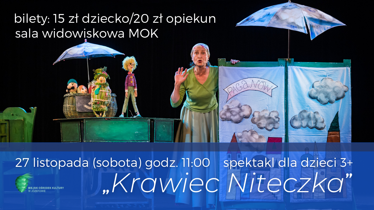 Spektakl powstał w oparciu o opowiadanie Kornela Makuszyńskiego. Jest to historia dzielnego krawca, który po wielu fascynujących przygodach dociera do Pacanowa i ratuje miasteczko przed potopem zaszywając dziurę w niebie, przez którą nieustannie padał na miasteczko deszcz. Po tak bohaterskim czynie Krawiec Niteczka zostaje królem Pacanowa i mężem pięknej królewny.