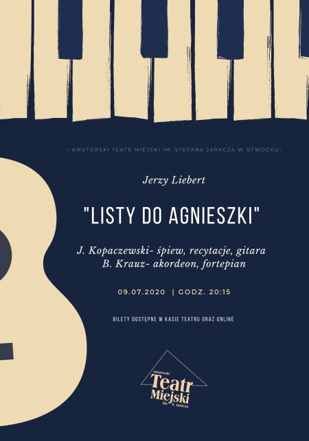 W programie niezwykły zbiór listów Jerzego Lieberta (z lat 1923-1928), przedwcześnie zmarłego na gruźlicę wybitnego poety, porównywanego z Norwidem, przeplatany songami opartymi o jego wiersze. Listy Lieberta do Agnieszki to „w polskim piśmiennictwie dzieło bardzo dużego formatu, głęboko poruszające czystym moralnym blaskiem, artystycznie – nie mniej doskonałe niż listy Słowackiego”(Jerzy Andrzejewski) pokazujące świat polskiej kultury XX wieku.