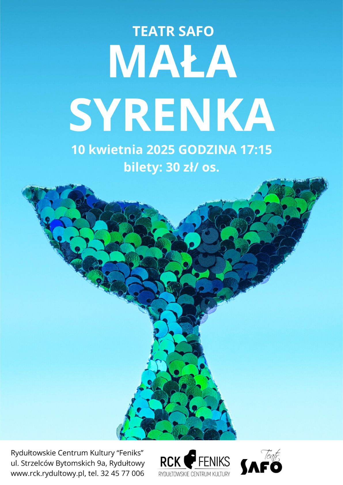 Zapraszamy na spektakl familijny "Mała Syrenka" na motywach baśni Hansa Christiana Andersena. Teatr SAFO i grupa taneczna "Przygoda" zabiorą Was do podwodnego, tajemniczego świata.