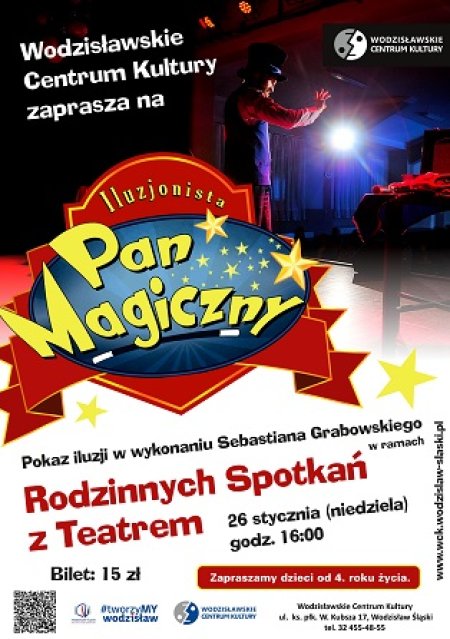 Wodzisławskie Centrum Kultury zaprasza na wyjątkowy spektakl iluzji „Pan Magiczny show”, który odbędzie się w ramach kolejnej odsłony Rodzinnych Spotkań z Teatrem" już w niedzielę, 26 stycznia o godz. 16:00.