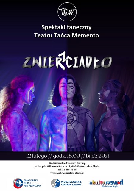 Teatr Tańca Memento zaprasza na premierę teatralną do Wodzisławskiego Centrum Kultury. Tym razem grupa wystawi spektakl pt. „Zwier(z)ciadło”. Premiera odbędzie się w niedzielę, 12 lutego o 18:00 w WCK.