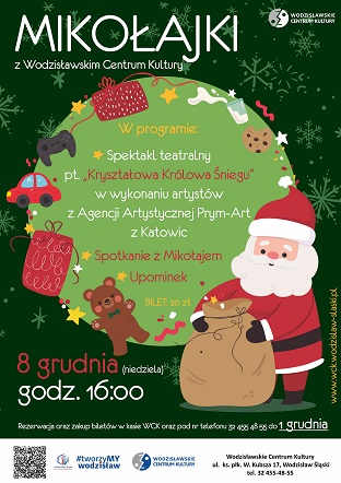 Jeden z najbardziej wyczekiwanych przez dzieci dni w roku zbliża się wielkimi krokami. 8 grudnia o godz. 16:00 do Wodzisławskiego Centrum Kultury zawita święty Mikołaj. Ale zanim dzieciaki spotkają się z niezwykłym gościem i otrzymają od niego upominek, będą mogły zobaczyć spektakl “Kryształowa królowa śniegu” w wykonaniu zespołu aktorskiego Prym-Art z Katowic.