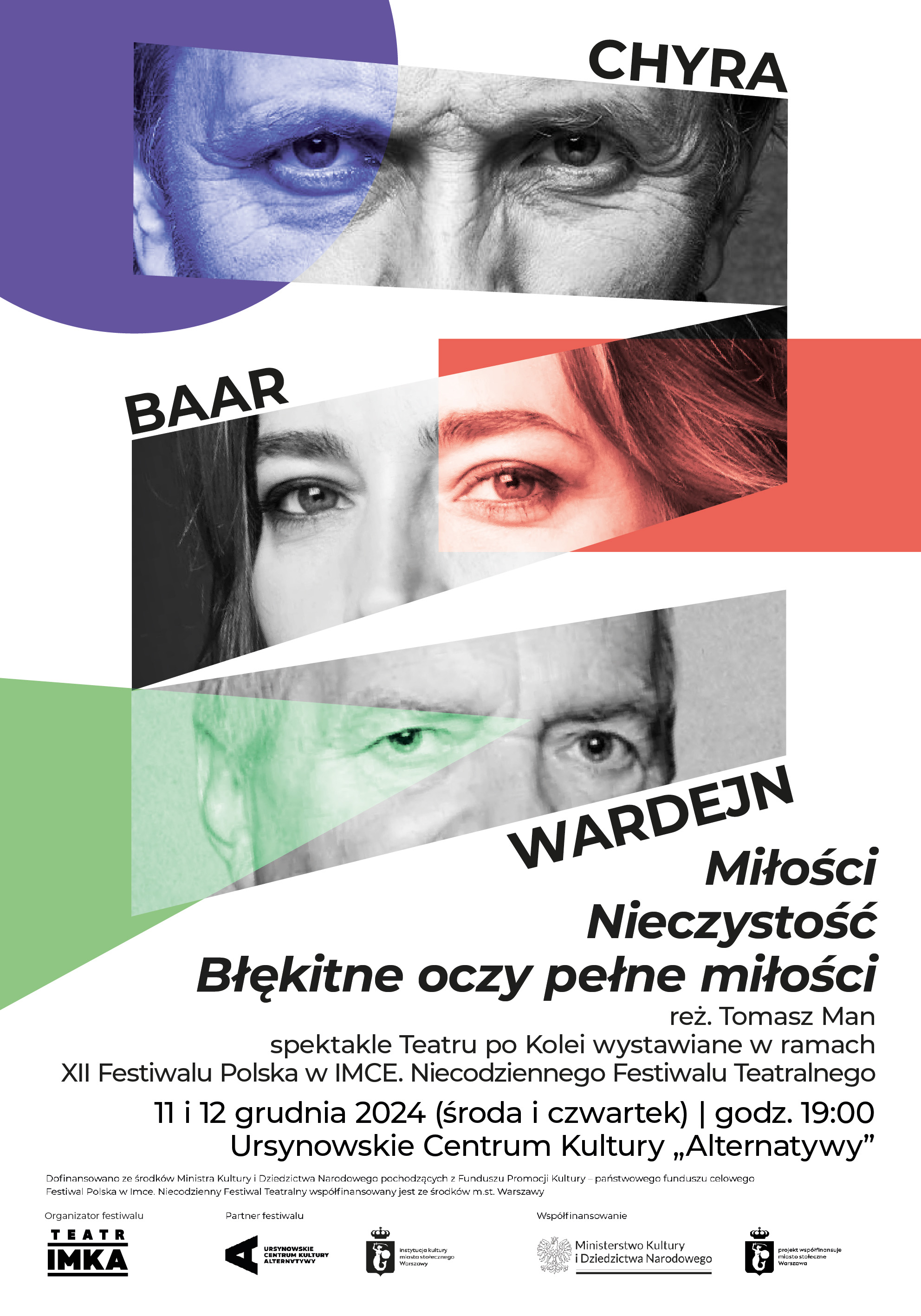 „Miłości”, „Nieczystość”, „Błękitne oczy pełne miłości” | reż. Tomasz Man | spektakle Teatru po Kolei wystawiane w ramach XII Festiwalu Polska w IMCE. Niecodziennego Festiwalu Teatralnego
