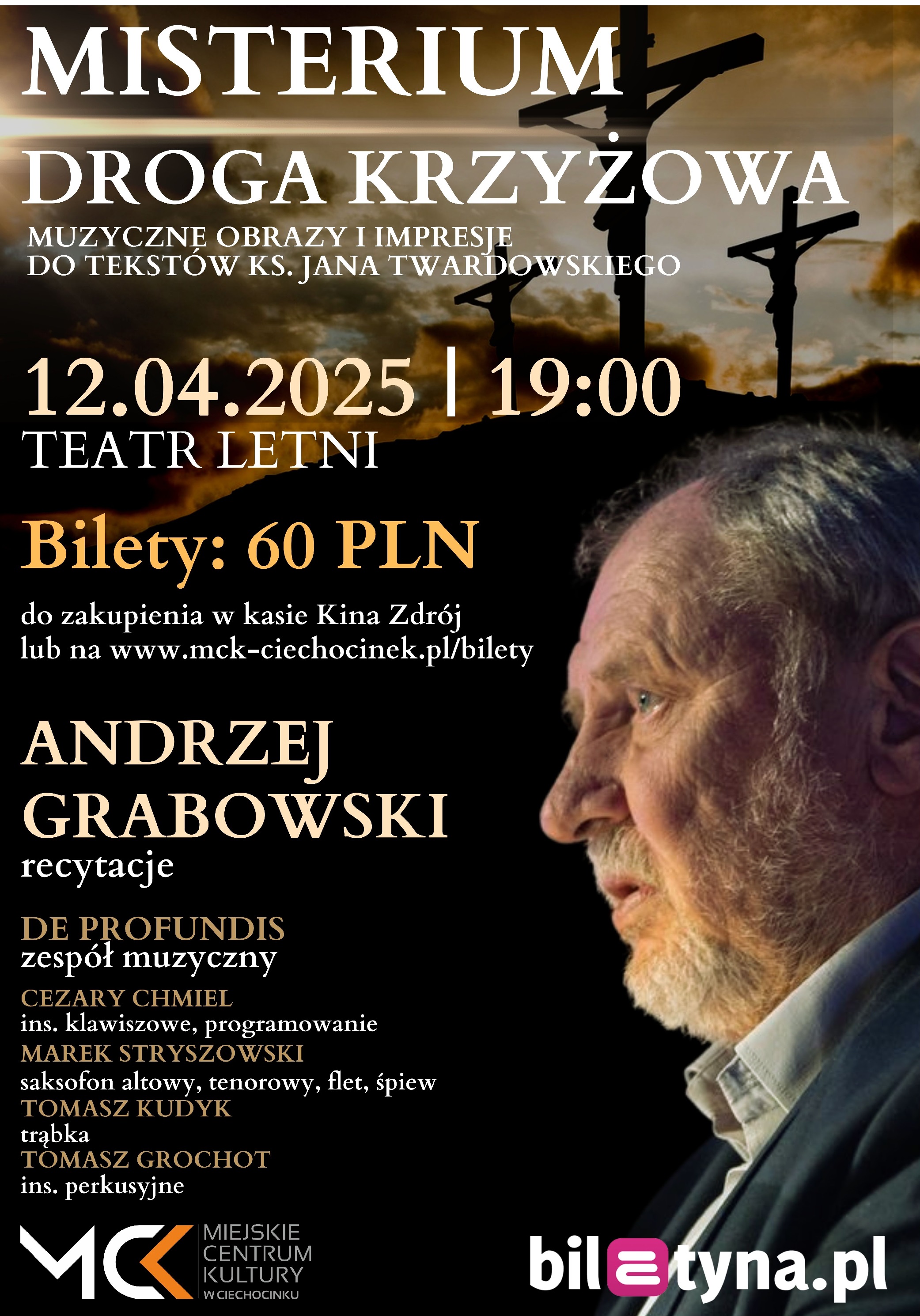 Wystąpią: Andrzej Grabowski (recytacje), zespół muzyczny De Profundis, Cezary Chmiel (instr. klawiszowe, programowanie), Marek Stryszowski (saksofony, flet prosty, śpiew) oraz Tomasz Kudyk (trąbka). Misterium jest autorskim projektem Marka Stryszowskiego. Siła widowiska opiera się na specjalnie skomponowanej przez Cezarego Chmiela (muzyczne obrazy) i Marka Stryszowskiego (muzyczne impresje) współcześnie brzmiącej muzyce, inspirowanej filozoficznymi tekstami księdza Twardowskiego, które deklamuje znakomity aktor Andrzej Grabowski.