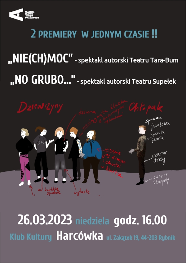 Już 26 marca, w Klubie Kultury „Harcówka” będziecie mogli zobaczyć dwa najnowsze spektakle: