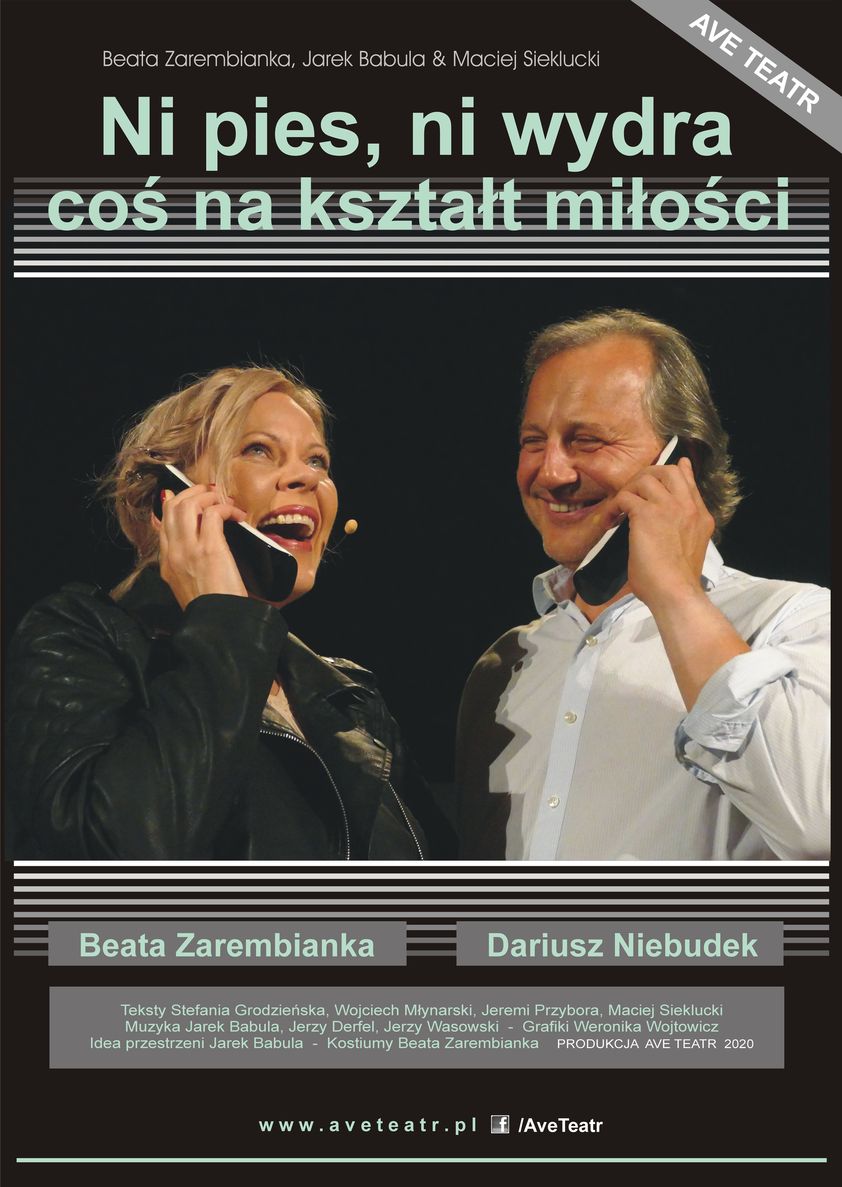 Przedstawiamy Państwu satyryczno - muzyczny spektakl "Ni pies, ni wydra, coś na kształt miłości", bazujący w swej konwencji na najlepszych wzorach, takich jak "Kabaret Starszych Panów". Jest to podróż przez różne odcienie miłości, opowiedziana i wyśpiewana słowami Stefanii Grodzieńskiej, Wojciecha Młynarskiego, Jeremiego Przybory oraz Macieja Siekluckiego, ze znakomitą muzyką Jarka Babuli, Jerzego Derfla i Jerzego Wasowskiego.