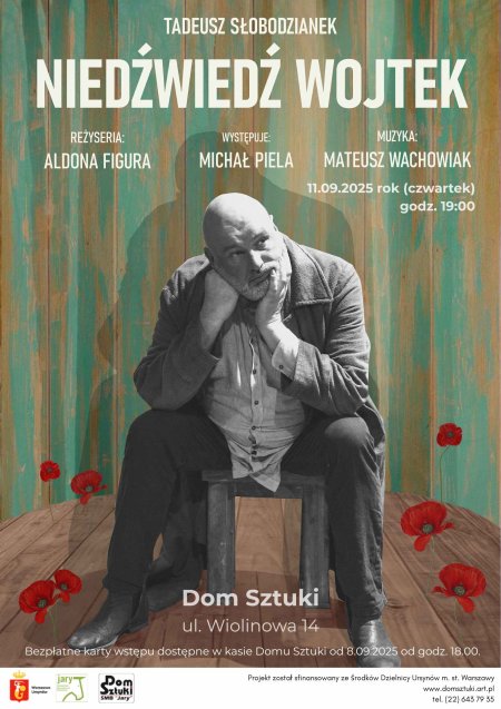 Już 11 września o godz. 19:00, w ramach Inauguracji Roku Kulturalnego na Ursynowie 2024/2025, zapraszamy do Domu Sztuki na poruszający spektakl: „Niedźwiedź Wojtek”!