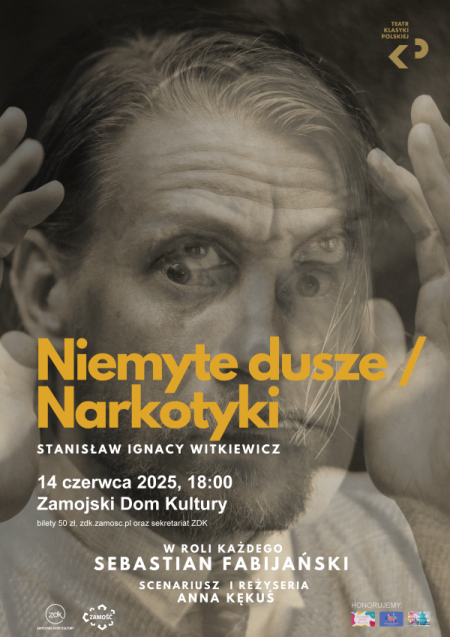 „Niemyte dusze / Narkotyki” w reżyserii Anny Kękuś – spektakl, który prowokuje, intryguje i wciąga widza w nieznane rejony ludzkiej psychiki. Oparty na tekstach Stanisława Ignacego Witkiewicza, mistrza słowa, metafory, absurdu i groteski zabiera nas w niepokojącą podróż przez meandry świadomości, kształtowanej przez wpływ substancji odurzających. W roli Każdego zobaczymy Sebastiana Fabijańskiego.