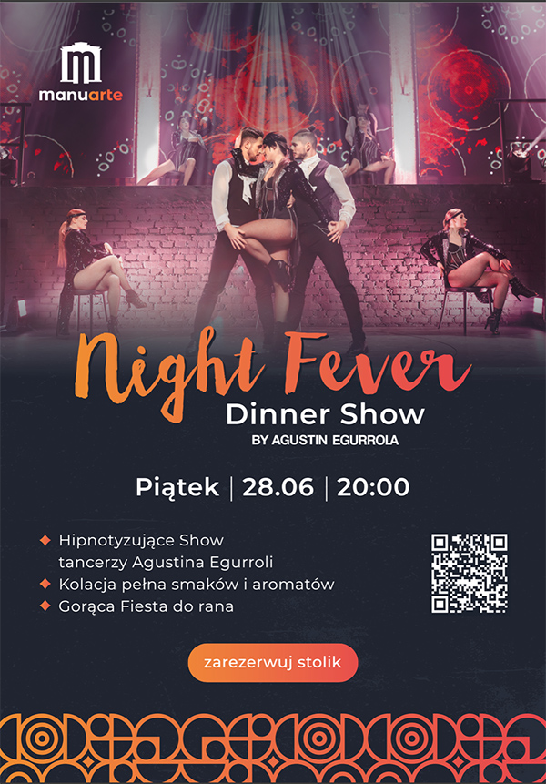 Zapraszamy w niesamowitą podróż przez świat tańca, smaku i najlepszej zabawy! Night Fever Dinner Show by Agustin Egurrola łączy w sobie wszystkie elementy, które sprawiają, że ten wieczór będzie wyjątkowy i niepowtarzalny. Niezapomnianych doznań artystycznych dostarczą tancerze Agustina Egurroli, którzy swoim show przeniosą Cię w magiczny świat tańca, pełny niepowtarzalnych emocji.