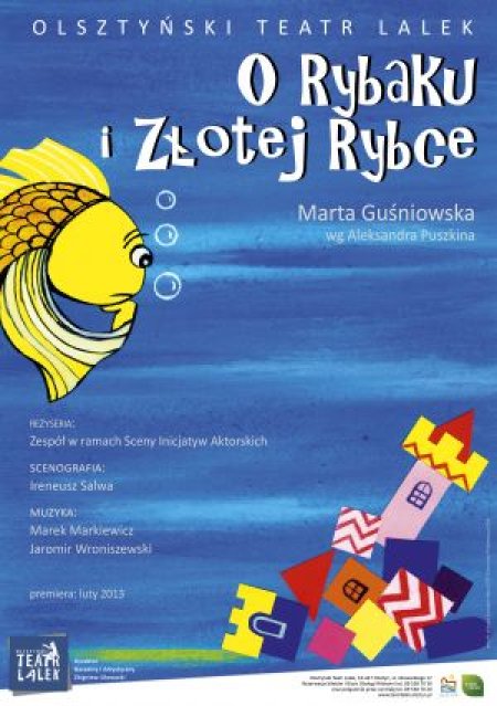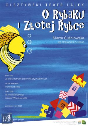 Pełna humoru adaptacja sceniczna znanej wszystkim dzieciom legendy "O Rybaku i Złotej Rybce" oparta na motywach baśni Aleksandra Puszkina, napisana na nowo lekkim, współczesnym językiem przez dramatopisarkę Martę Guśniowską, której twórczość cieszy się ogromnym powodzeniem. Spektakl powstał w ramach Sceny Inicjatyw Aktorskich Olsztyńskiego Teatru Lalek. Urzeka pięknem teatru cieni i animacją dużych form teatralnych.