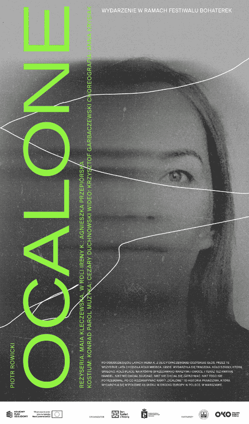 OD TWÓRCÓW: Po osiemdziesięciu latach Irena K. z ulicy Opaczewskiej odzyskuje głos. Przez te wszystkie lata chodziła koło miejsca, gdzie wydarzyła się tragedia. Koło szkoły, którą spalono. Koło placu, na którym sprzedawano warzywa i owoce. I teraz też kwitnie handel. Nikt nie chciał słuchać. Nikt nie chciał się zatrzymać. Nikt tego nie potrzebował, po co rozdrapywać rany? „Ocalone" to historia prawdziwa, która wydarzyła się w połowie XX wieku. W środku Europy. W Polsce. W Warszawie. W obozie przejściowym na Zieleniaku masowo gwałcono kobiety. Nikt dokładnie nie wie ile ich było. Setki? Tysiące? Nikt nie zna ich nazwisk ani imion. Sprawcy są znani: Ronowcy, diabły umazane marmoladą, obwieszone zegarkami, pijące wódkę z baniek po mleku, w kradzionych koszulach i z karabinami na sznurkach. Ofiary wybierali nocami, pomagali sobie latarkami. Krzyki, jęki, skowyt, stos spuchniętych ciał, a potem cisza. Irena K. odzyskała głos. Musi zebrać wszystkie siły, aby przywrócić pamięć o wszystkich nieznanych bohaterkach poległych w sierpniu 1944 roku na warszawskim Zieleniaku. Musi zadbać o ich obecność w świadomości dzisiejszych i przyszłych pokoleń. Zapraszamy Państwa na uroczyste odsłonięcie pomnika, który na zawsze zachowa w pamięci los bohaterek.