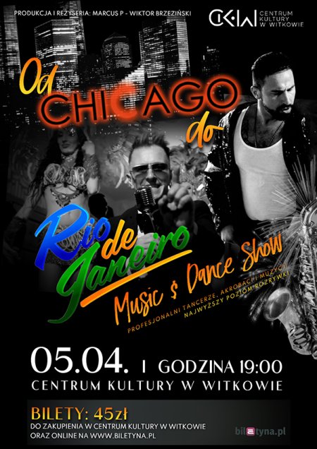 Zapraszamy na niezapomniane show muzyczno-taneczne "Od Chicago do Rio De Janeiro Music & Dance Show", które odbędzie się 5 kwietnia o godzinie 19:00 w Centrum Kultury w Witkowie. To wyjątkowe wydarzenie łączy w sobie profesjonalne pokazy taneczne, akrobatyczne popisy i muzykę na najwyższym poziomie, zapewniając widzom niezapomniane wrażenia artystyczne.