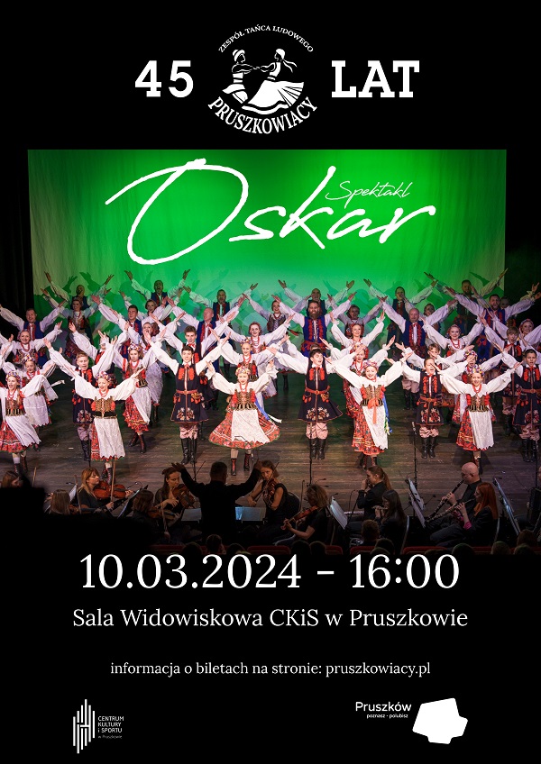 Na swoje 45 urodziny Zespół Tańca Ludowego „Pruszkowiacy” przygotował spektakl pt. „Oskar”. To barwna opowieść o wyprawach wybitnego etnografa Oskara Kolberga, który ponad pięćdziesiąt lat swojego życia poświęcił na odkrywanie i dokumentowanie polskiej kultury ludowej. Jego dorobek to aż 85 tomów monografii regionalnych, objętych wspólnym tytułem „Lud. Jego zwyczaje, sposób życia, mowa, podania, przysłowia, obrzędy, gusła, zabawy, pieśni, muzyka i tańce”.
