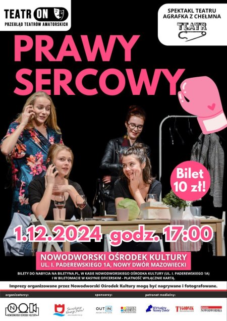 W ramach Przeglądu Teatrów Amatorskich TeatrON zapraszamy na spektakl pt. „Prawy sercowy” w wykonaniu teatru AGRAFKA z Chełmska.