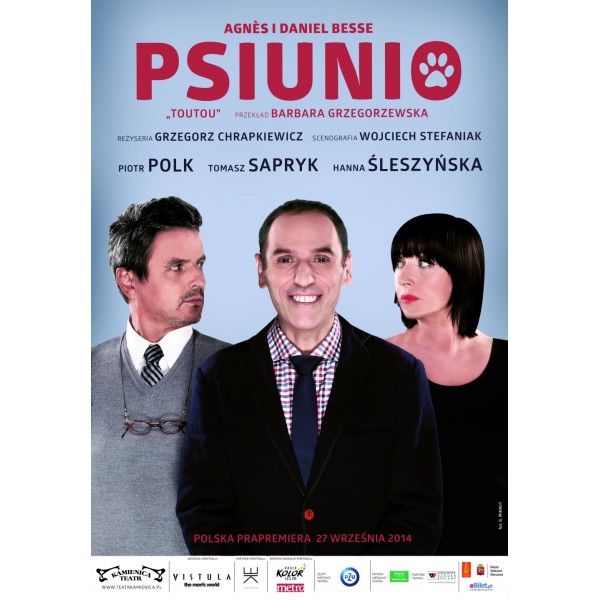 Premiera spektaklu "Psiunio" to strzał w dziesiątkę. Skrzące się finezyjnym humorem dialogi i najwyższej klasy aktorstwo Hanny Śleszyńskiej, Piotra Polka i Tomasza Sapryka wywoływały salwy śmiechu i rzęsiste brawa publiczności, która szczelnie zapełniła widownię. A wydawałoby się przecież, że banalny temat nie przyciągnie na dłużej uwagi widza. No bo cóż się w istocie stało? Pan domu wrócił z wieczornego spaceru z psem bez... Psiunia. Wywołało to lawinę pretensji pani domu i coraz głębsze poczucie winy pana. Okazuje się, że w tym małżeństwie wspólny pupil stał się najsilniejszym spoiwem. Dorosły syn wyjechał za granicę, więc uczucia rodzicielskie zostały przelane na czworonoga.