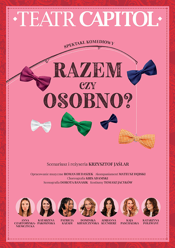 Zapraszamy na muzyczną, komediową nowość „Razem czy osobno?” w wykonaniu znanych i uwielbianych przez Widzów Aktorek, które śpiewająco zabiorą Was w świat skomplikowanych damsko – męskich relacji. Nie zabraknie wzruszeń, miłosnych historii, tańca i różańca, ale przede wszystkim nie zabraknie emocji i …śmiechu!