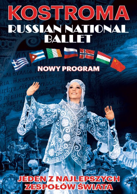 Nowy program prezentowany przez RUSSIAN NATIONAL BALLET KOSTROMA, zawiera oprócz tradycyjnych tańców i muzyki z Rosji również wspaniałe opracowania kultury Chin, Grecji, Węgier, Norwegii, Kuby i Irlandii, pokazanej przy pomocy różnych technik scenicznych. Połączenie lirycznych szkiców z elementami baletu klasycznego, starożytnej epopei rosyjskiej oraz tańca współczesnego ukazuje wspaniałe dziedzictwo wielu pokoleń i narodów. Na scenę wyjdzie 50 wybitnych artystów z niezliczoną ilością kolorowych kostiumów i rekwizytów – to będzie wielkie, niepowtarzalne show, niezapomniana wycieczka po kilku kontynentach. Feria barw i bogactwo dźwięków przeniosą Państwa w inny świat, to będzie niezwykła podróż w czasie, liryczna i nostalgiczna a zarazem ekspresyjna i pełna wigoru. GWARANTUJEMY WSPANIAŁE PRZEŻYCIA.