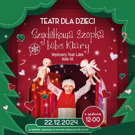 SPEKTAKL TEATRALNY DLA DZIECI „Szydełkowa Szopka Babci Klary” Wędrowny Teatr Lalek Małe Mi