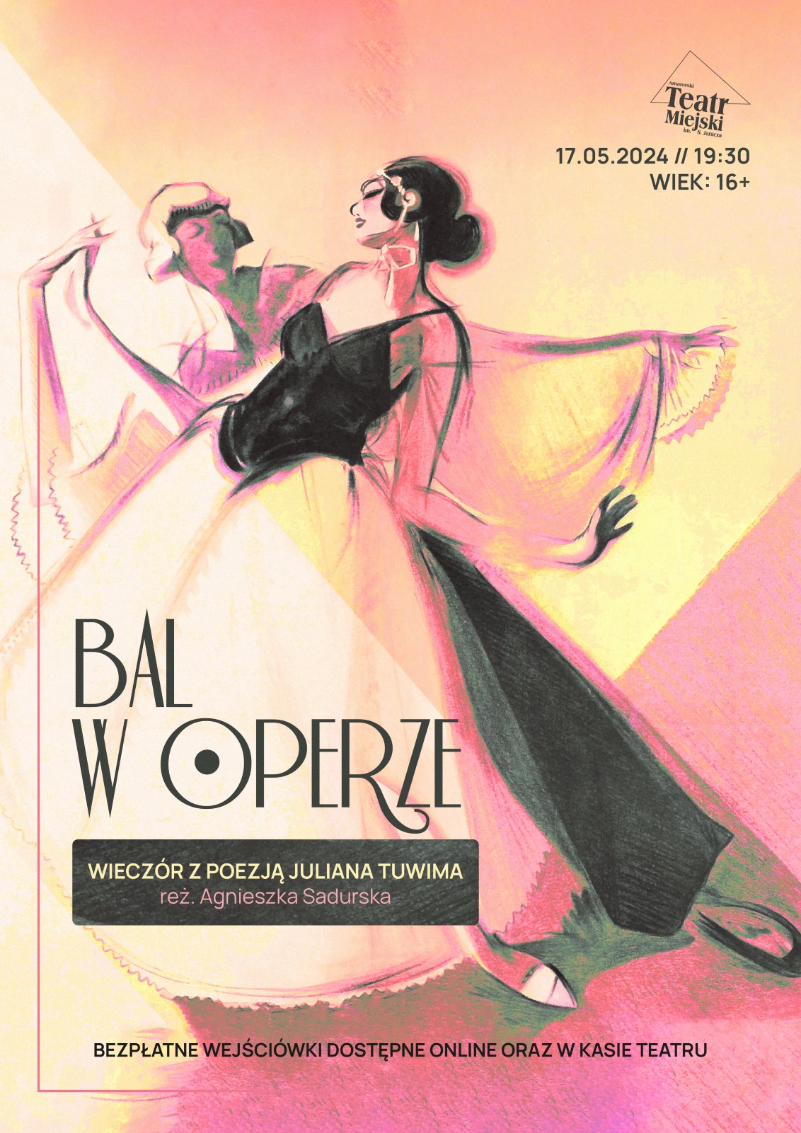 Zapraszamy serdecznie na wieczór liryczno-muzyczny z twórczością Juliana Tuwima, zatytułowany „Bal w operze”, w reżyserii Agnieszki Sadurskej