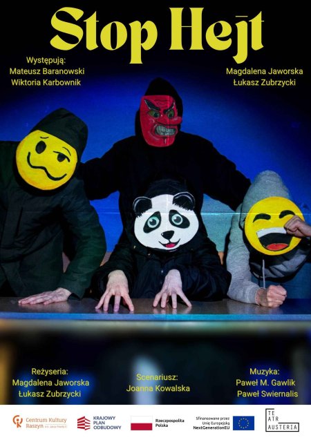 Zapraszamy na spektakl "STOP HEJT" – dynamiczną opowieść o współczesnej rodzinie, presji mediów społecznościowych i odwadze, by prosić o wsparcie. To nie jest kolejny moralizatorski wykład. To spektakl stworzony językiem młodych: pełen rapu, nowoczesnych technologii AI i emocji, które dotykają każdego z nas.