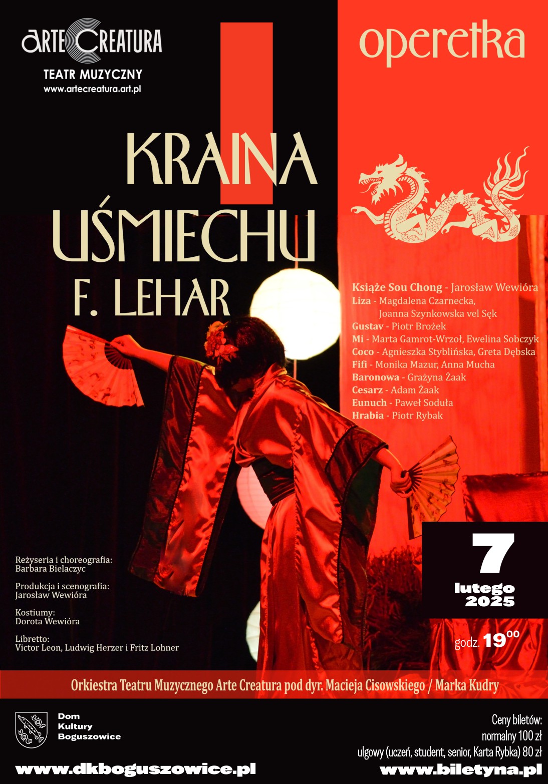 Franz Lehár, mistrz operetki wiedeńskiej, stworzył to arcydzieło w 1929 roku. Arie i duety, takie jak Twoim jest serce me, Kto dał nam klucze do miłości bram czy Herbatka sam na sam, od lat podbijają serca publiczności i stały się klasykami scen muzycznych. Libretto przenosi nas w świat wielkiej miłości z nutą egzotyki chińskiej kultury.